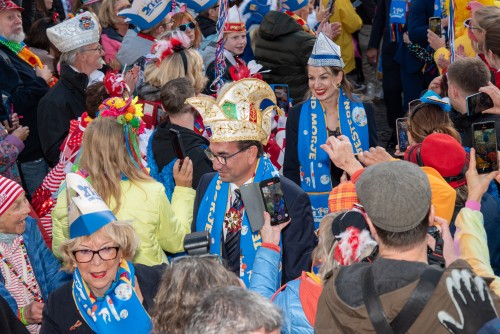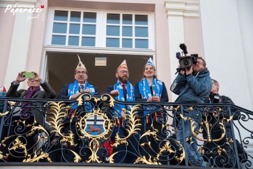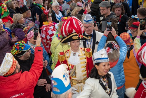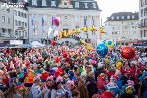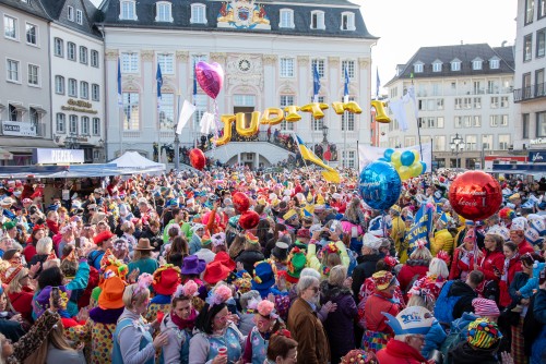 Pünktlich um 11:11 Uhr bei strahlendem Sonnenschein wurden die Rathaustollitäten auf dem Bonner Marktplatz empfangen.